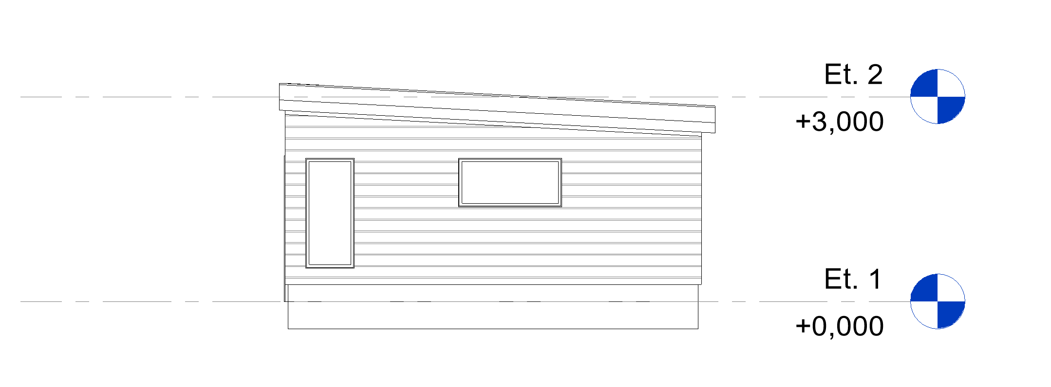 Denne garasjen kombinerer moderne design med praktiske løsninger. Fasaden har rene linjer, store vindusflater for naturlig lys og en overbygd inngang som gir en innbydende og skjermet adkomst. Det skrånende taket bidrar både til god drenering og en moderne arkitektonisk stil.